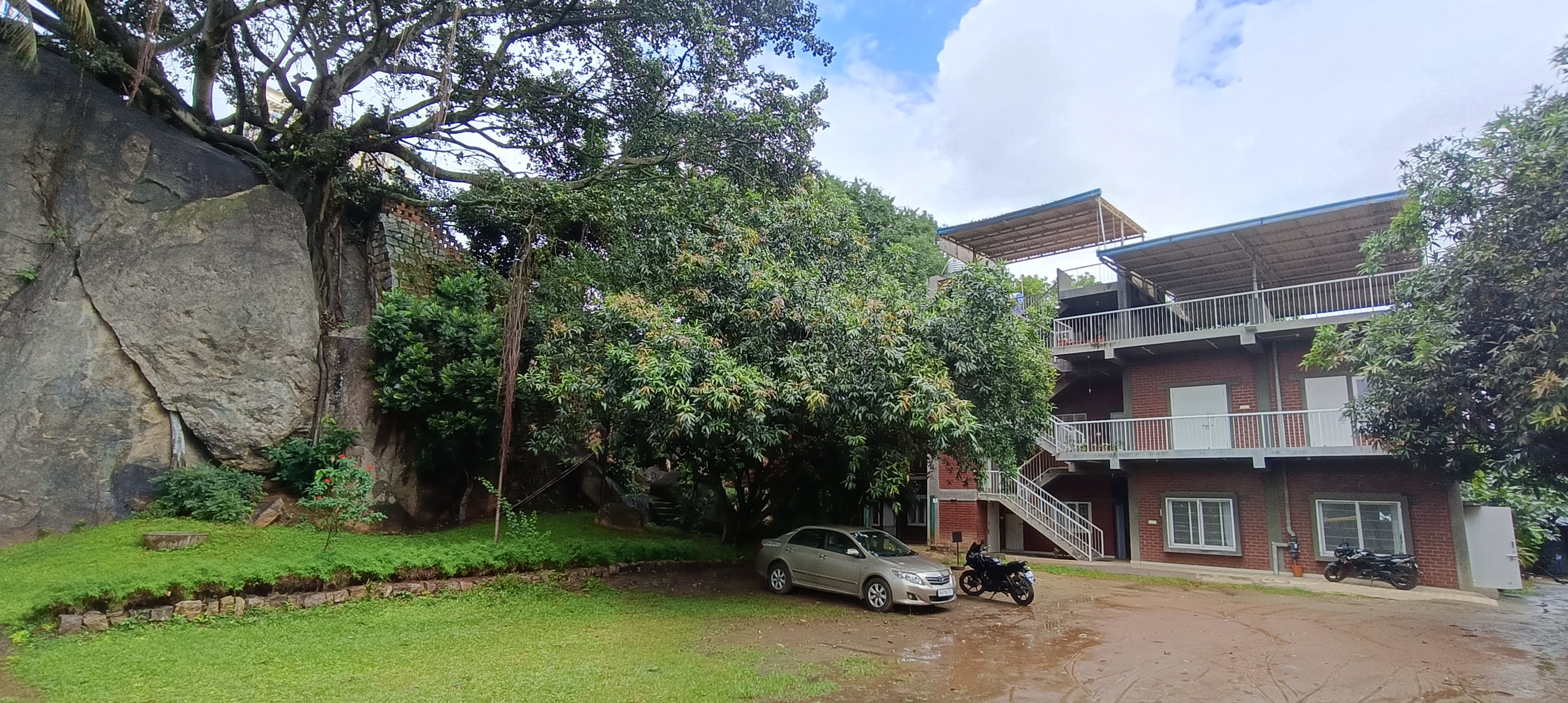 In the campus, we have a rock which is 40 feet high and 60 feet wide. On top of the rock is a Mysore fig tree, which has grown beautifully. It is not easy for a seed to grow on a mighty rock. Yet, the tree has risen against all odds to be a symbol of determination.
